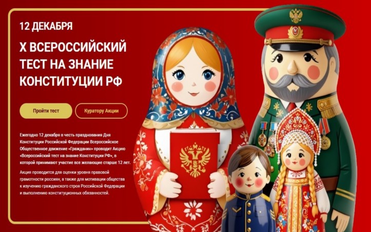 Ежегодно 12 декабря Общественное Движение «Гражданин» проводит Всероссийский тест на знание Конституции Российской Федерации.