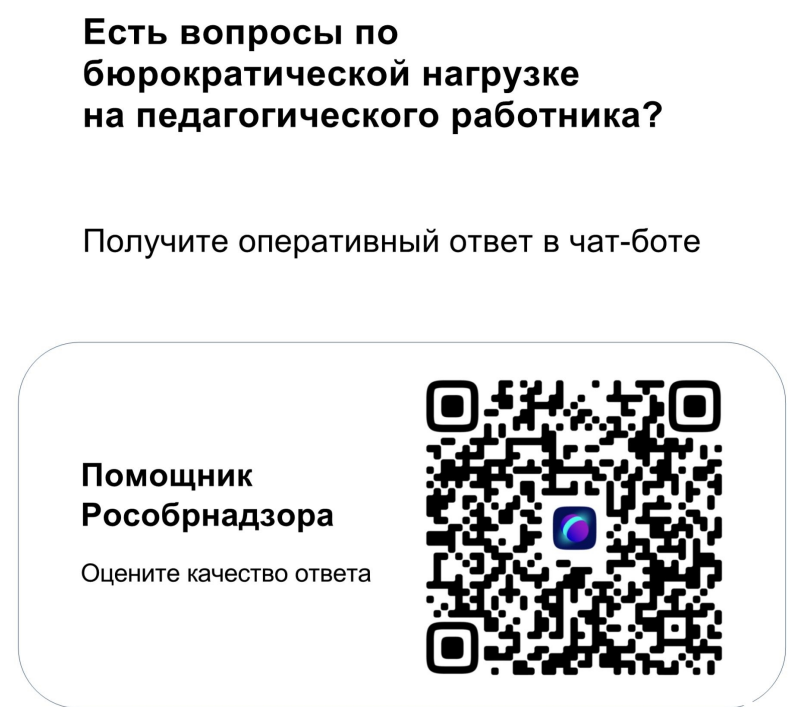 Информация о функционировании чат-бота "Помощник Рособрнадзора" по вопросам снижения бюрократической нагрузки на педагогических работников