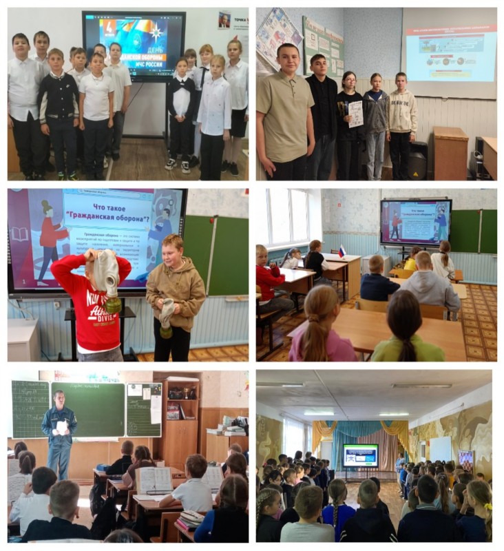 1 октября в общеобразовательных организациях Октябрьского муниципального района прошли открытые уроки по основам безопасности жизнедеятельности, приуроченные ко Дню гражданской обороны России, на тему: «История создания Гражданской обороны. Гражданская оборона на современном этапе». Учащиеся познакомились с историей гражданской обороны России, узнали о сигналах гражданской обороны, видах чрезвычайных ситуаций и действиях при ЧС, правилах пожарной безопасности, посмотрели видеофильмы. В данных мероприятиях приняли участие сотрудники МЧС Октябрьского муниципального района, региональной противопожарной службы.