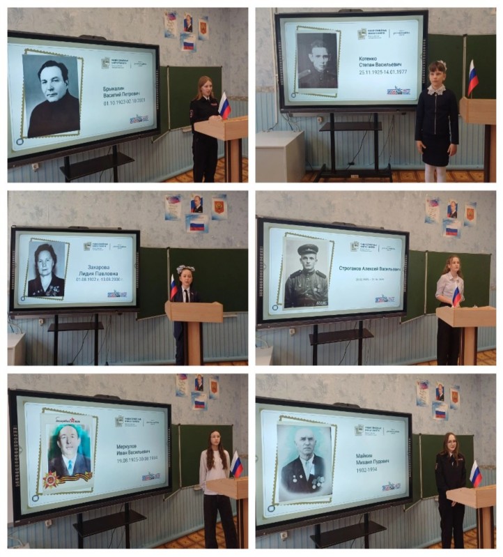 В стенах МБОУ «Октябрьская средняя школа №2» собрались 30 школьников и педагогов, чтобы почтить память своих родных. В течение одной минуты каждый из них рассказывал о своих близких – тех, кто приближал долгожданную Победу в годы Великой Отечественной войны. Выступления сопровождались слайдами с фотографиями героев.